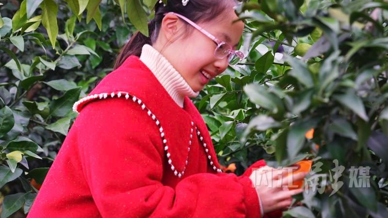 与此同时,高石镇藕塘村的果冻橙种植基地里,还有一群孩子开启了“橙”意满满的实践课。20多名中小学生在文明实践志愿者和家长的陪伴下,挎着小篮子穿梭在果树间,踮脚、伸手,小心翼翼地摘下圆滚滚、黄澄澄的果冻橙。