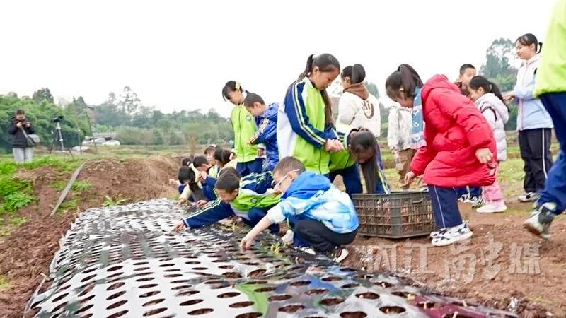 首站走进严陵镇马道村香葱种植基地,一场“香葱科普课”率先开讲,农技人员用通俗的语言讲解香葱生长周期、种植技巧,以及其作为“川菜调味灵魂”的家乡饮食文化地位。“香葱喜阳要浇水,松土才能长得旺”,孩子们听得入神,接连抛出“小葱多久成熟”“会不会开花”等问题。