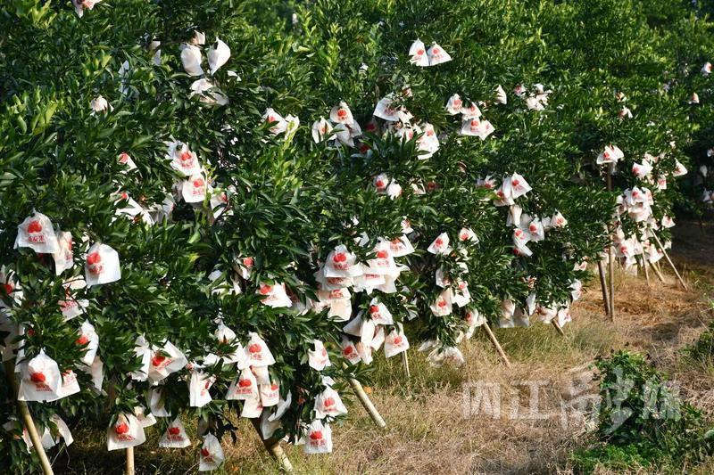 当前正是柑橘丰收的时节。近日,记者走进位于内江经开区靖民镇石马村的内江市坳城十六度种植专业合作社果园,放眼望去,漫山遍野的果树整齐排列,枝头挂满套袋的耙耙柑,到处是一派丰收景象。