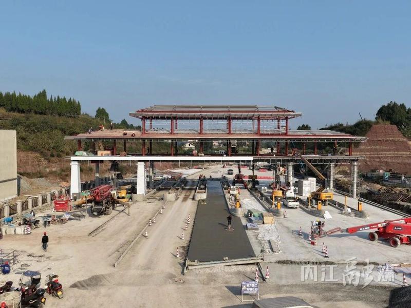 在项目建设现场,各项收尾工程正按计划落地。龙江收费站主体工程已基本完工,收费大棚等核心设施轮廓清晰;资中西收费站施工现场,工人们正有序开展站房外立面钢结构安装、场地硬化及管线铺设等作业。