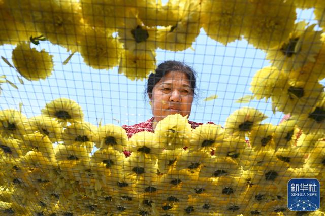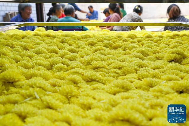 11月11日,四川省内江市光明村,村民在分拣刚采摘的菊花。