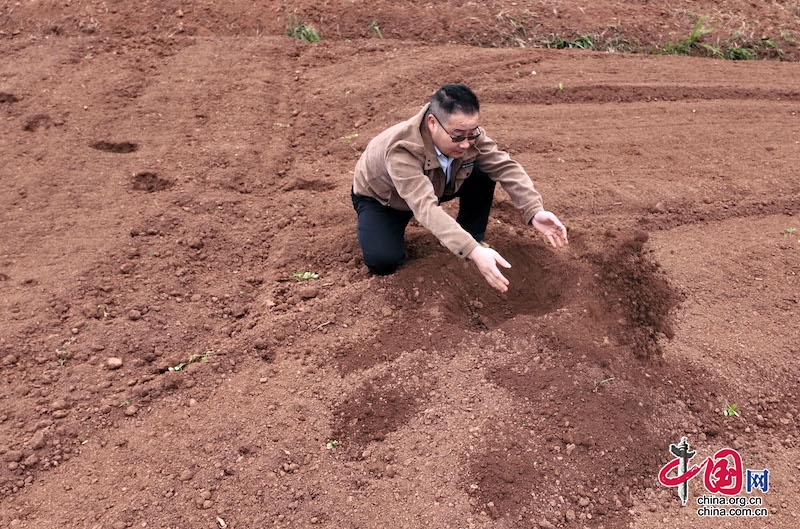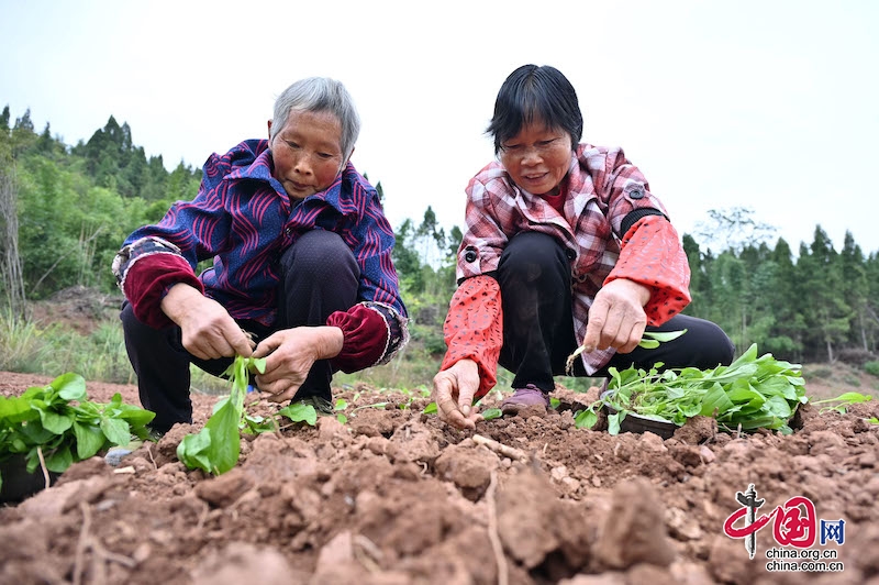 11月13日,内江市东兴区高梁镇方家沟村,当地村民正在移栽车前子。