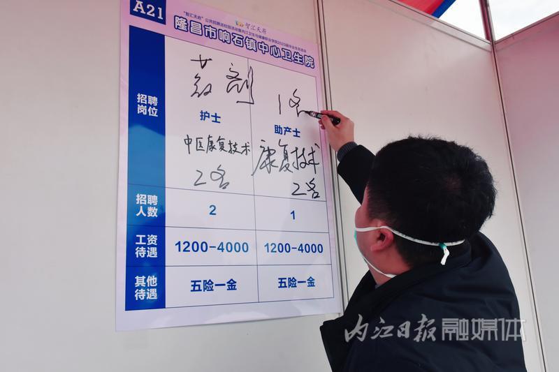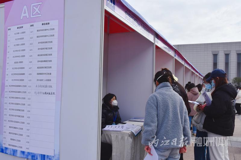 “我学的是护理,刚刚转了一圈,觉得这些岗位与我的专业很对口。我对内江市第一人民医院规培护士岗位感兴趣,希望自己能把握这次机会留在内江工作,为内江经济社会发展贡献一份力量。”毕业生勾萌接受记者采访时说。