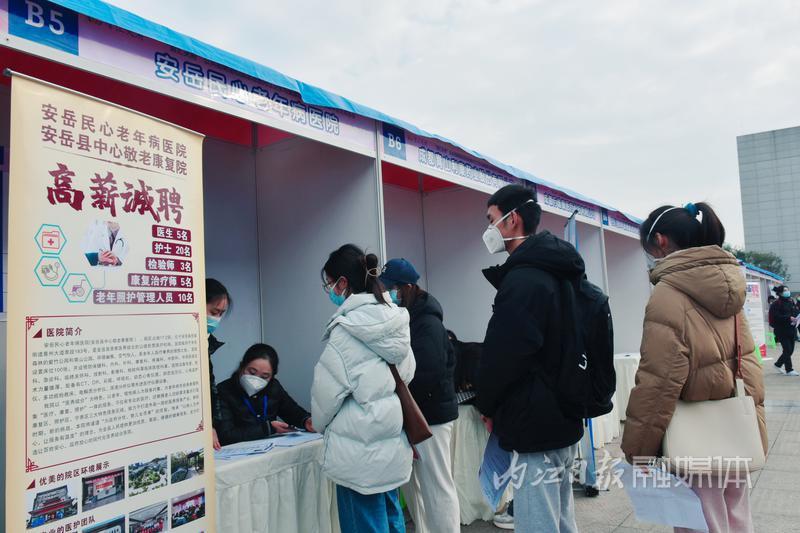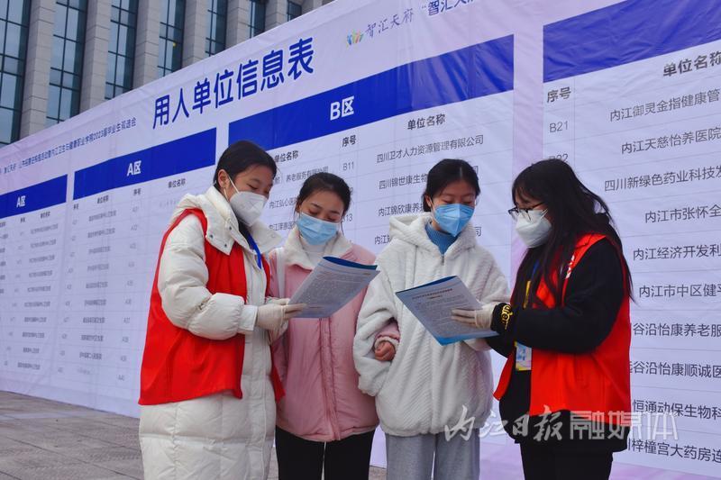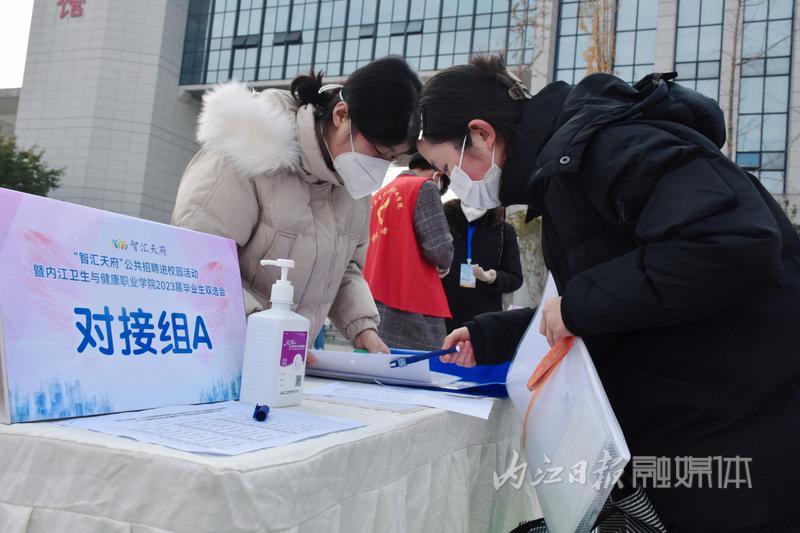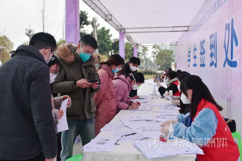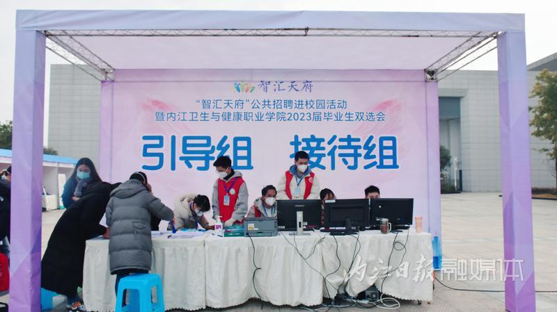 12月18日,“智汇天府”公共招聘进校园活动暨内江卫生与健康职业学院2023届毕业生双选会举行,吸引市内外66家企事业单位参与,线上线下提供就业岗位1064个。
