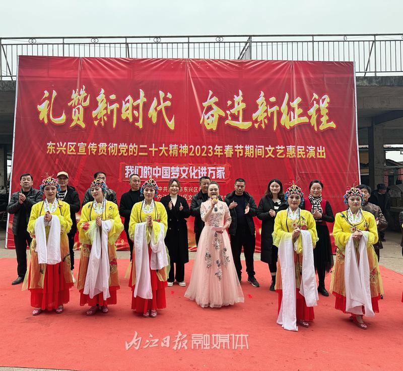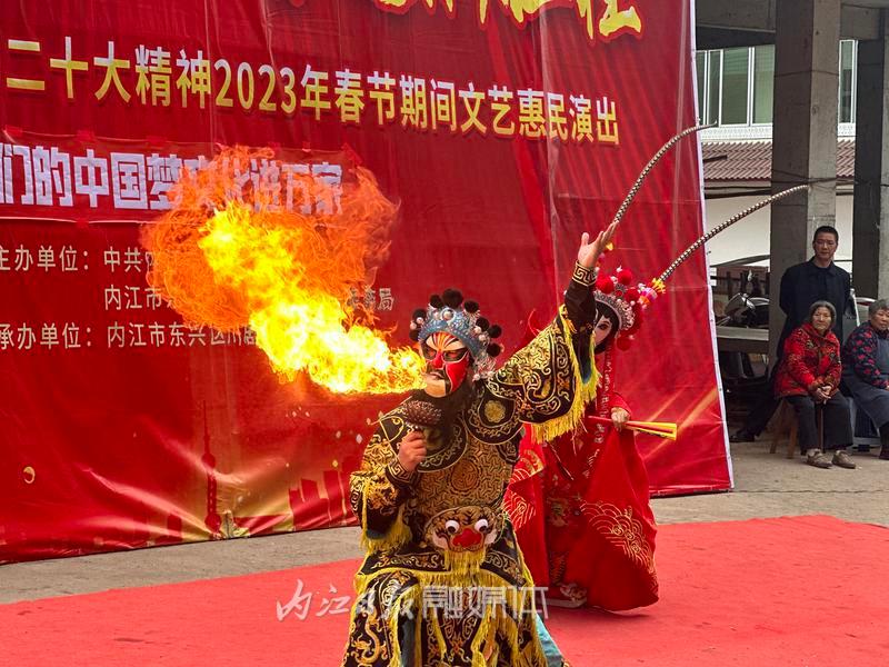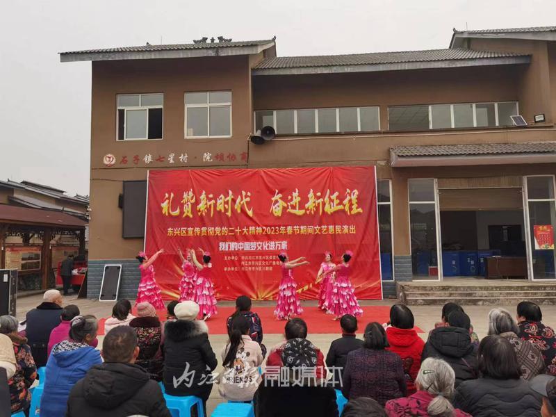 2月2日,内江市东兴区委宣传部、东兴区文化广播电视和旅游局联合东兴区川剧团,到白合镇华山村开展文艺惠民演出,将党的二十大精神以群众喜闻乐见的方式送到千家万户。此前,还到石子镇开展了文艺惠民演出。
