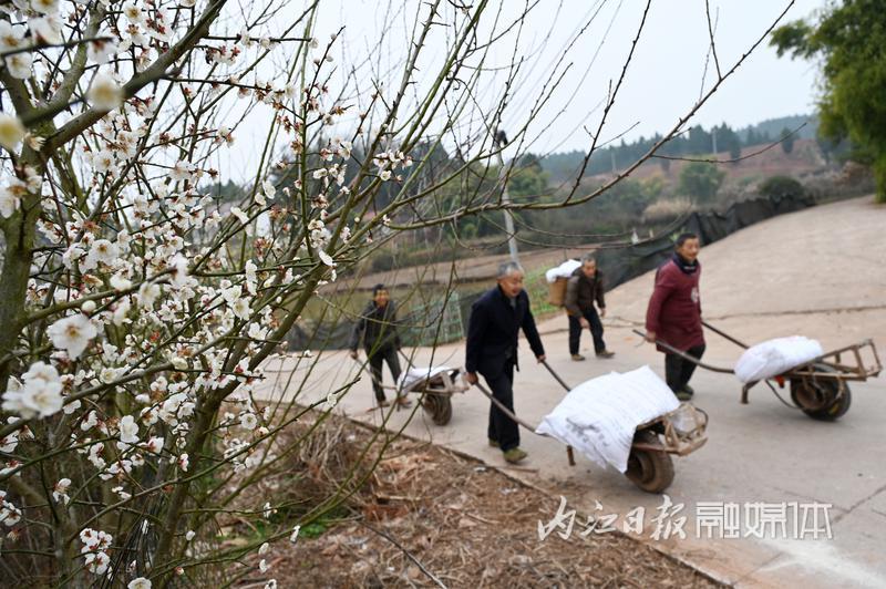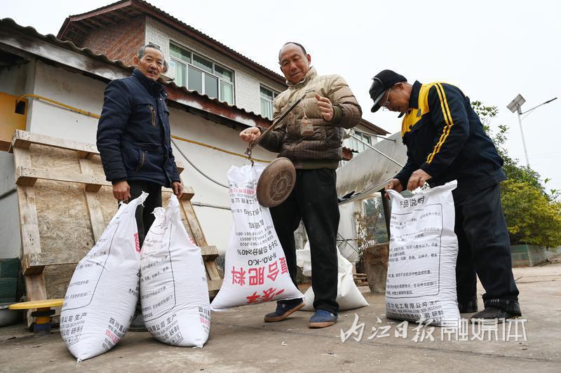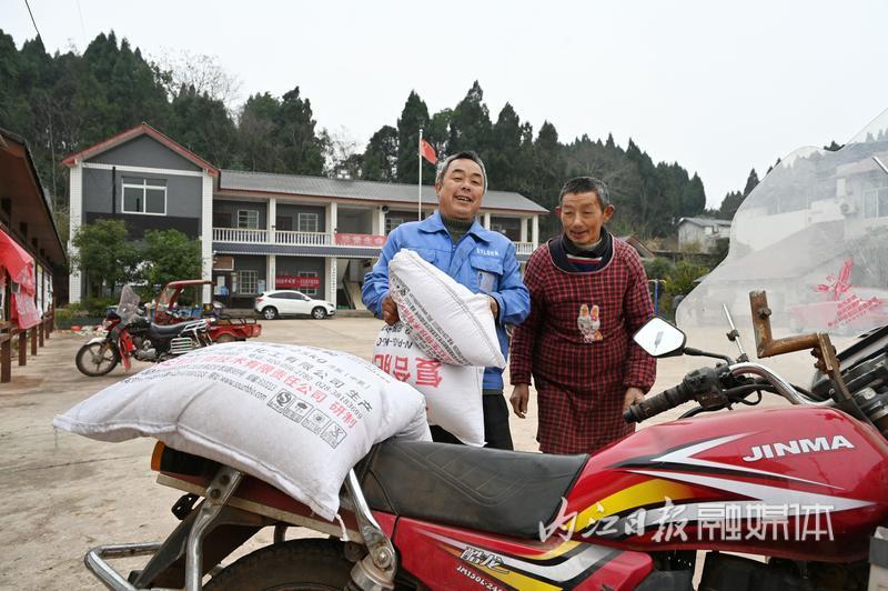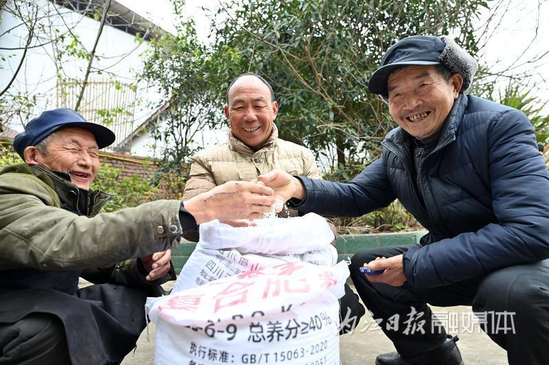 2月17日,内江市东兴区双桥镇书房村,村民喜领免费化肥。