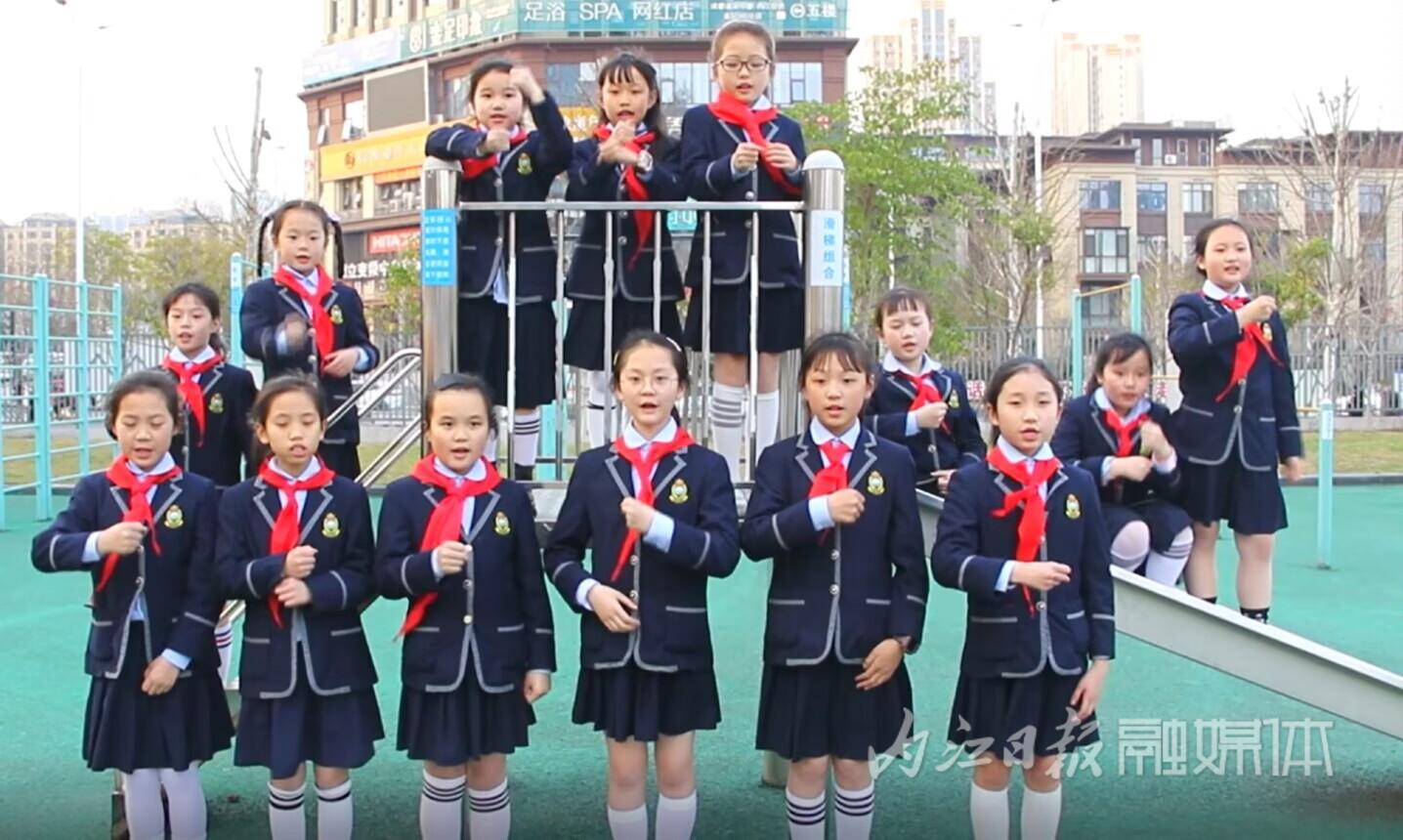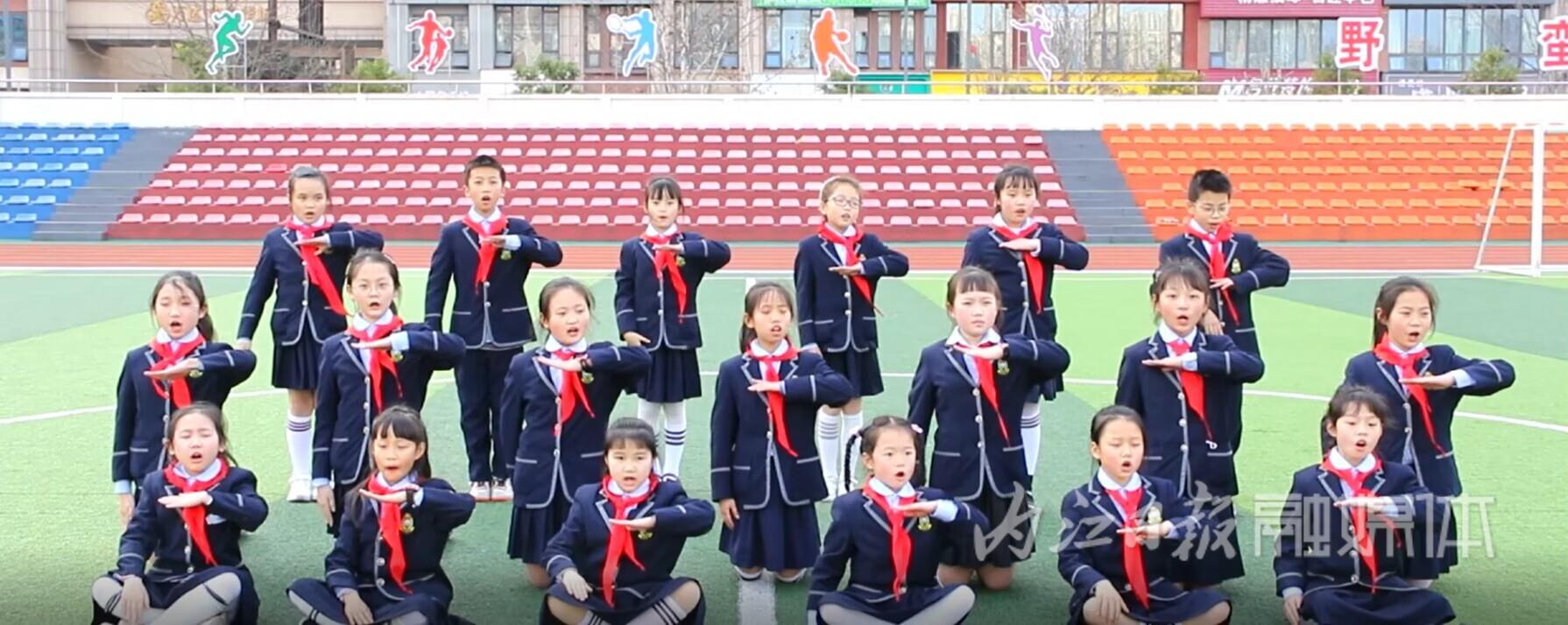 打拍、握拳、比心、伸展臂膀、敬礼……3月3日,内江市东兴区五星小学校操场上,星光少年合唱团的“星娃”们认真表演手势舞。
