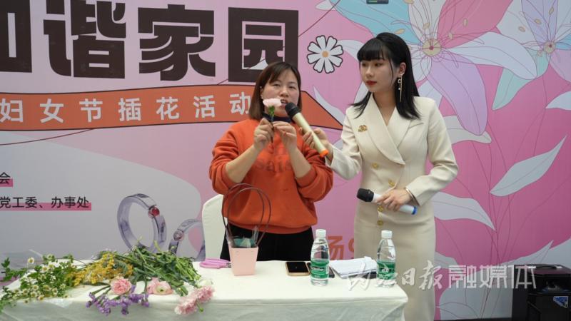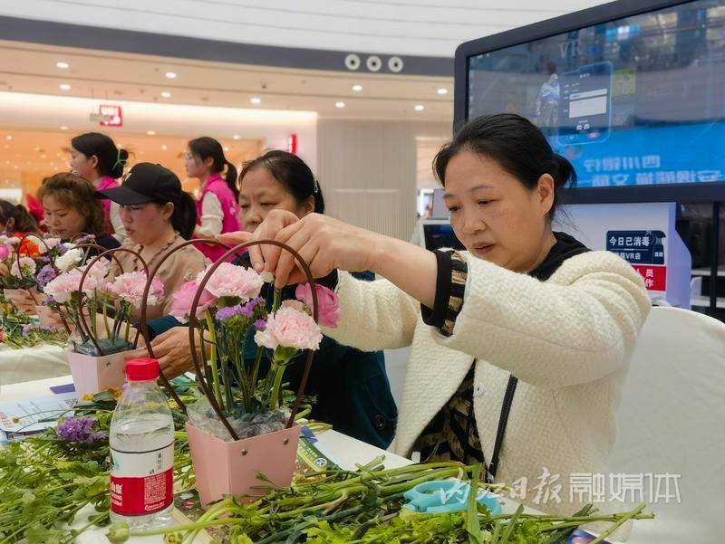 3月8日,第113个“三八”国际劳动妇女节如期而至。当天下午,内江市东兴区西林街道在内江万达广场开展“平安西林 和谐家园”妇女节插花活动。