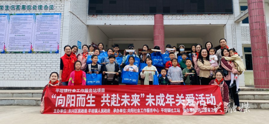 为丰富农村留守儿童的课余生活,在日常的生活和学习中给予他们来自社会大家庭的关怀。4月8日,“向阳而生 共赴未来”未成年关爱活动在东兴区平坦镇中心学校举行。