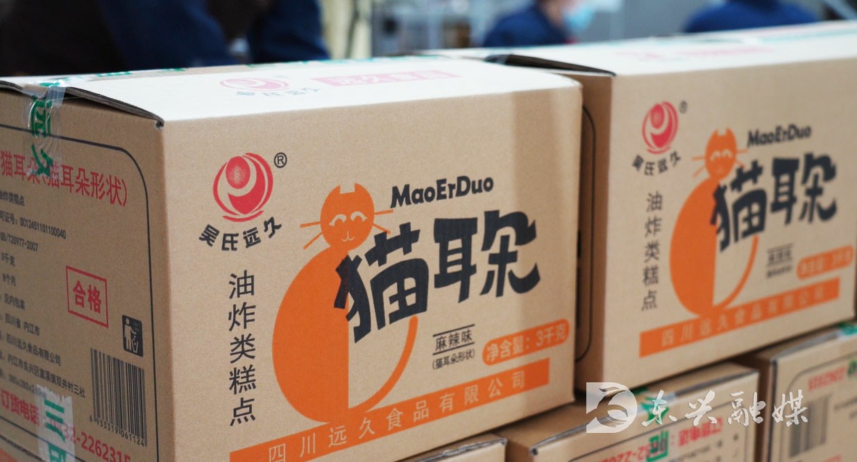 整理原料、拌料、烘烤、包装……4月9日,记者走进位于东兴区富溪镇双井村的四川远久食品有限公司生产车间,伴随着机器的轰鸣声,一条条生产线有序运转,工人们分工明确,大家卯足干劲,赶制发往全国各地的订单,整个生产车间一派忙碌景象。