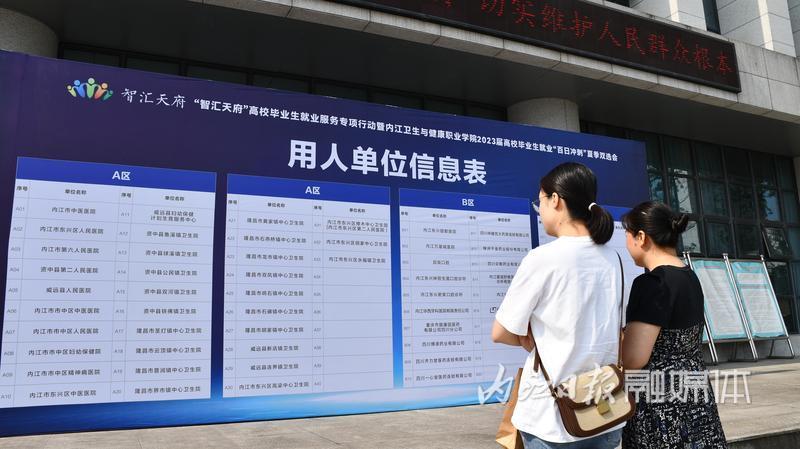 毕业季前后,正值高校毕业生求职高峰期。6月25日,由市人社局、市教体局、市卫健委举办,市人才交流中心牵头承办的“智汇天府”高校毕业生就业服务专项行动暨内江卫生与健康职业学院2023届高校毕业生就业“百日冲刺”夏季双选会在同学们的期待下如期举行。