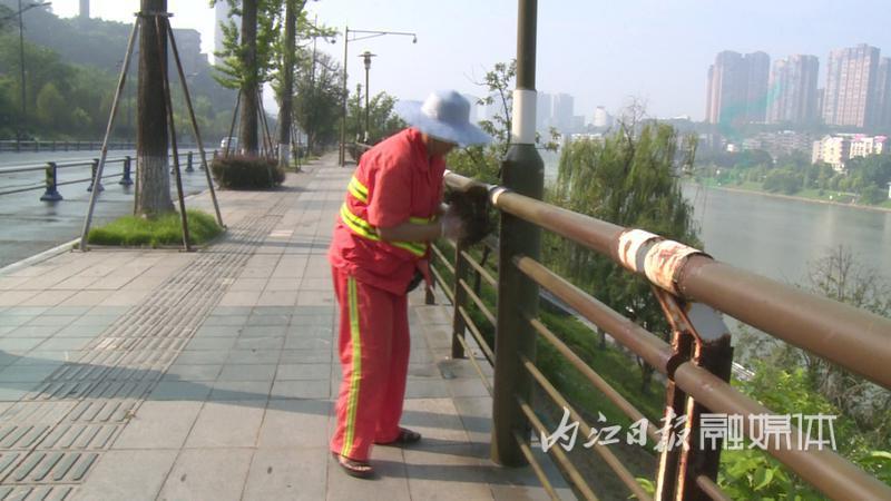 擦拭人行道护栏