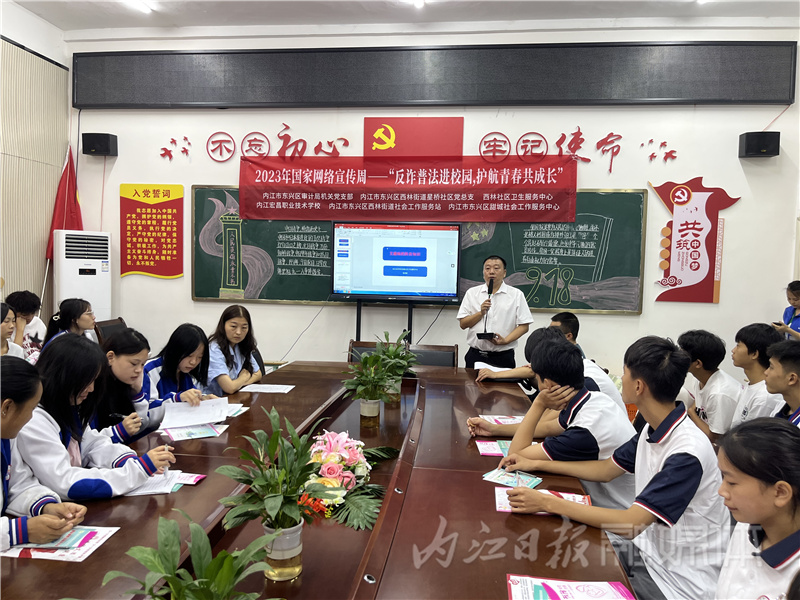 9月14日,东兴区审计局、西林社区卫生服务中心、西林街道星桥社区、西林街道社会工作服务站、东兴区甜城社会工作服务中心的社工、志愿者及工作人员,在内江宏昌职业技术学校开展“反诈普法进校园,护航青春共成长”活动。
