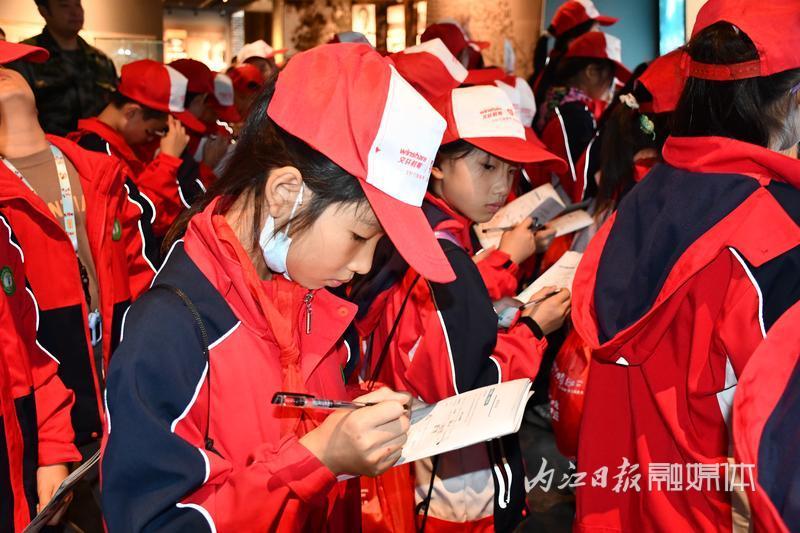 活动中,孩子们跟随讲解员的脚步,参观范长江生平事迹陈列馆。范长江西北考察时使用过的熊皮手套、随身携带的相机等物品吸引着孩子们的目光,大家认真听讲,踊跃提问,仔细记录笔记。