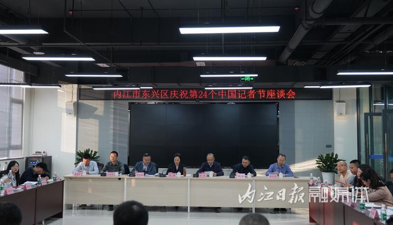 11月6日,内江市东兴区庆祝第24个中国记者节座谈会在区融媒体中心召开。图为会议现场