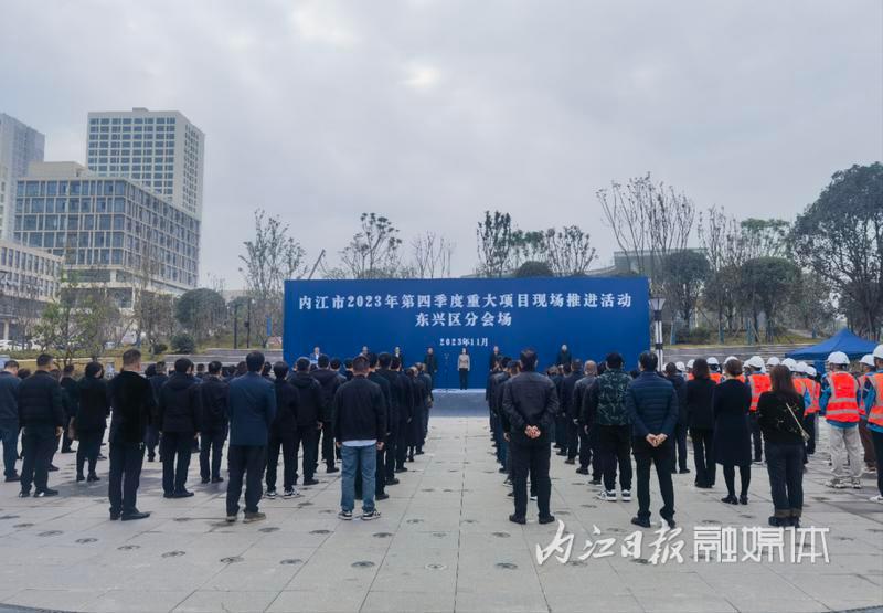11月28日,内江市东兴区2023年第四季度重大项目现场推进活动在内江软件与信息技术服务外包产业园中心广场举行。图为活动现场