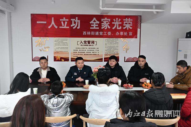 新春佳节即将来临,为进一步发扬“拥军优属、拥政爱民”的光荣传统,持续营造浓厚的双拥工作氛围,不断巩固军政军民团结良好局面。2月2日,东兴区双拥办联合城区各街道在西林街道天河社区举行2024年军人军属春节前座谈会,并开展集中送喜报活动。