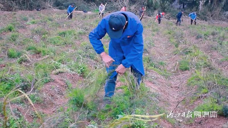 三月春光好,正值中药材管护时节。3月4日,记者在位于内江市东兴区椑木镇庙儿坡村3组的天冬种植基地看见,地里绿意盎然,10余名村民正在管护天冬,为丰产丰收打下基础。
