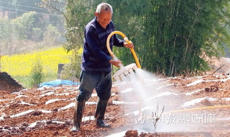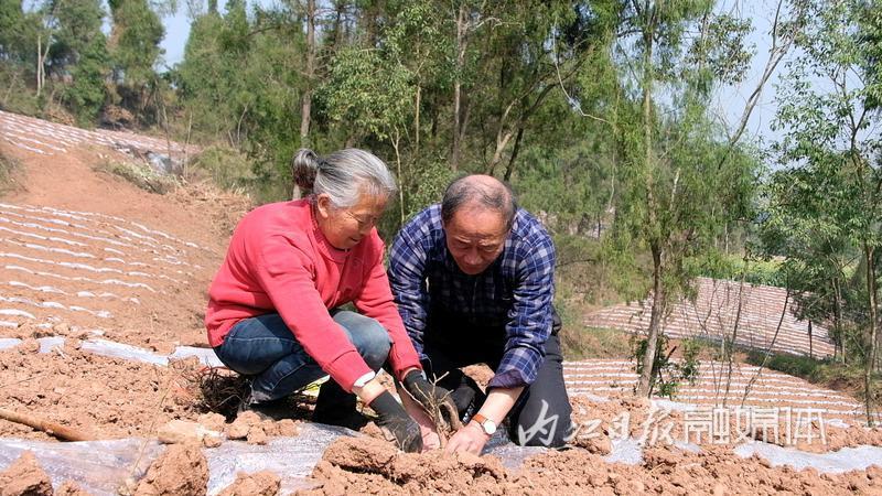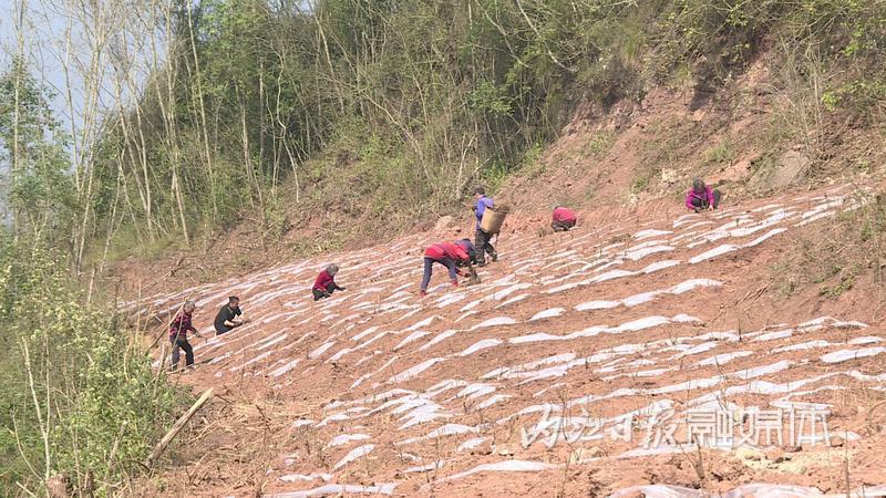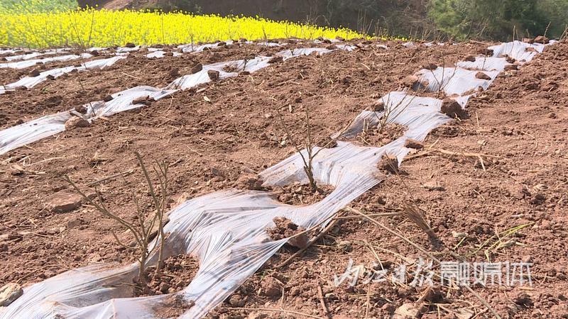 3月13日,在内江市东兴区高梁镇方家沟村玫瑰种植基地,村民们忙着栽种玫瑰苗。玫瑰抗旱、抗冻、耐瘠薄,既能绿化、美化山区,又能增加村民收入。