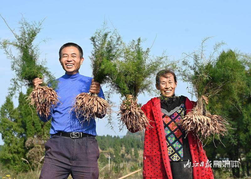 内江市东兴区是道地药材天冬的主要产区,有着“中国天冬之乡”的美誉。近年来,东兴区牢牢把握国家推动中医药振兴发展契机,致力于发展以天冬为核心的中医药大健康产业,助力内江做大“甜味+”产业集群。目前,已经发展了40余个天冬生态种植基地,种植天冬面积达5万亩,成功研发天冬系列大健康产品40余种。