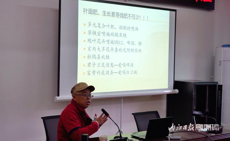 此次讲座邀请东兴区农业农村局多经站站长魏忠为大家分享庭院美化与绿植养护的小技巧。讲座上,魏忠以“菊花”为演示对象,跟大家细致讲解了月季栽培、养护的相关知识,以及手把手教授大家如何分枝、扦插。此外,还给大家演示了养月季时应该如何进行修剪,强调修剪的注意事项。比如要对徒长枝、过密枝、纤弱枝、病虫枝和枯枝进行修剪,使整个植株通风透光,帮助植株更好地茁壮成长等。