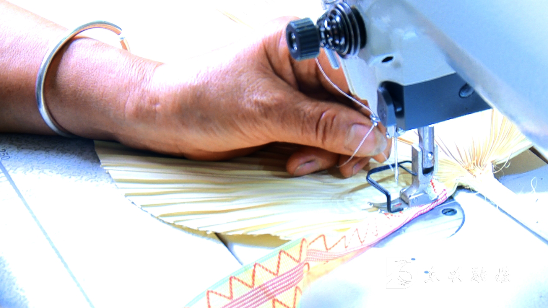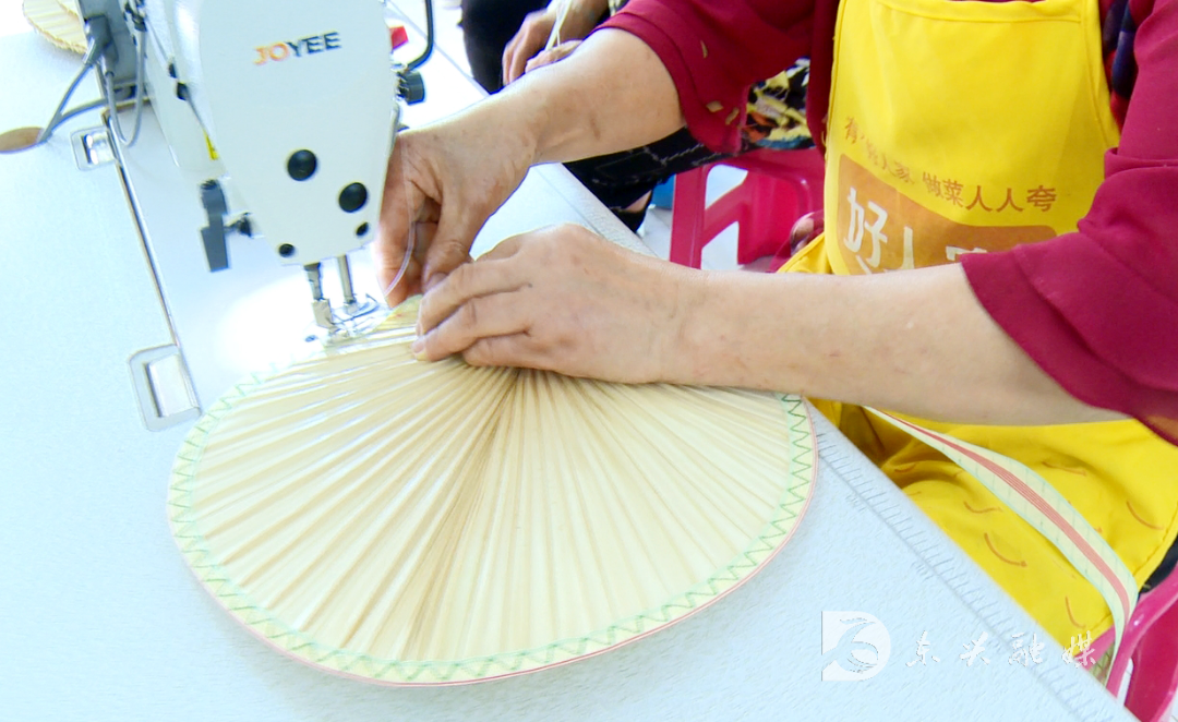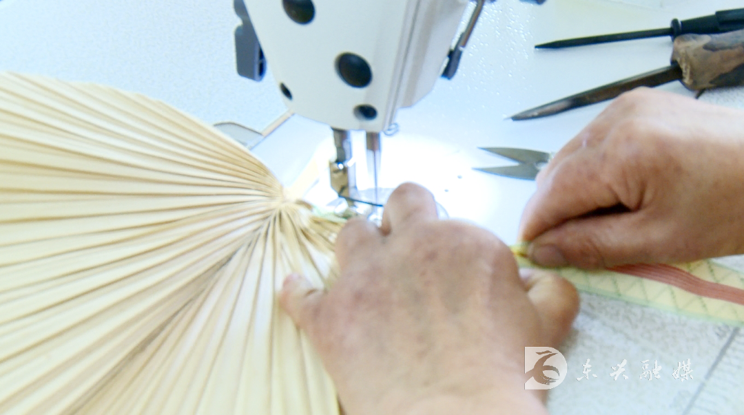 王立华告诉记者,蒲扇的制作技艺非常讲究,要经历收割原叶、扇面尾页分割、柄心处理、扇面梳理、挂钩上架、烘干、收捡入库、挑选清洗、晾干、硫磺熏、晾晒等二十多道工序,目前杨家镇种植了三千多亩蒲葵,蒲葵树长成后村民每年都可以收割蒲葵,给种植户带来年均十万多元的收益,夏季蒲扇呈现供不应求的态势。