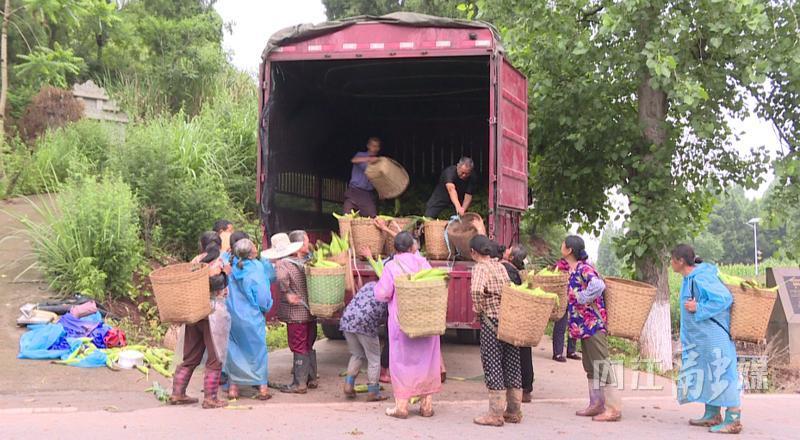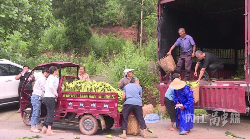 成行成列的鲜食玉米郁郁葱葱,一个个浑圆的玉米棒颗粒饱满,散发着清甜香味。村民们动作娴熟地把个头饱满的玉米采摘下来。采摘后,有的村民用背篓运输玉米,有的村民开着自家三轮车拉来满满一大车。经过现场分拣,一个个饱满结实的玉米被装上货车,准备发往内江城区及周边城市,市场供不应求。村民们脸上满是笑容,今年又能有一笔不小的收入。