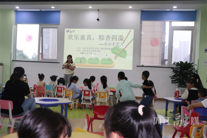6月8日,“欢乐童真,粽香四溢——小小手艺人”端午节包粽子活动在东兴区图书馆进行。30余个家庭在绘本故事中了解端午历史文化,在亲子活动中体验浓浓粽香。