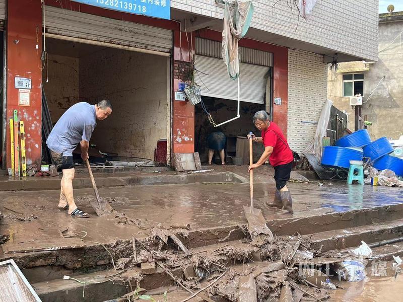 他们撸起袖子、挽起裤腿,用铁锹、铲子、扫帚等工具,对场镇道路、房前屋后及房屋内的淤泥和杂物进行全面清理。同时,现场还有大型机械配合清理转运。目前,白合镇正与消防、交通、疾控、电力、通信等多部门密切配合,全力开展灾后恢复工作,预计48小时内恢复场镇秩序。