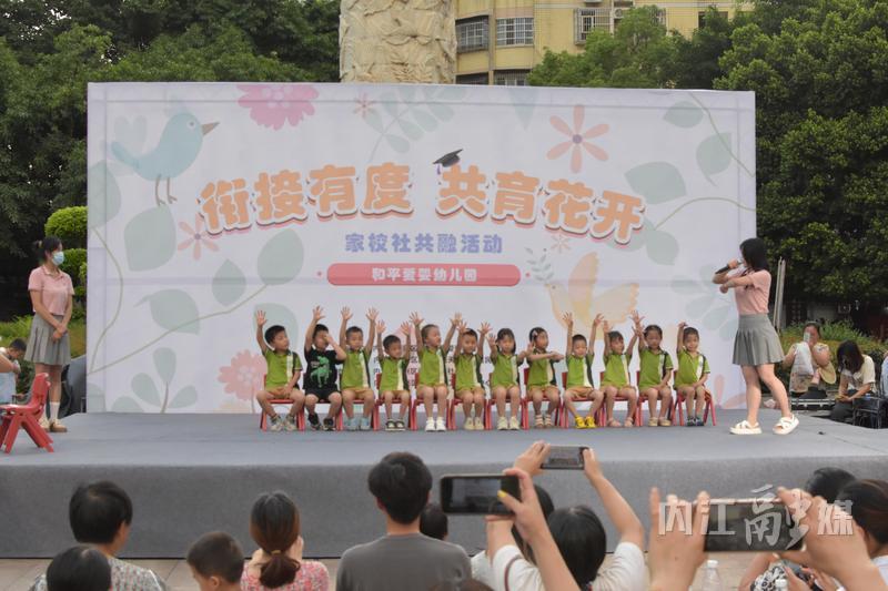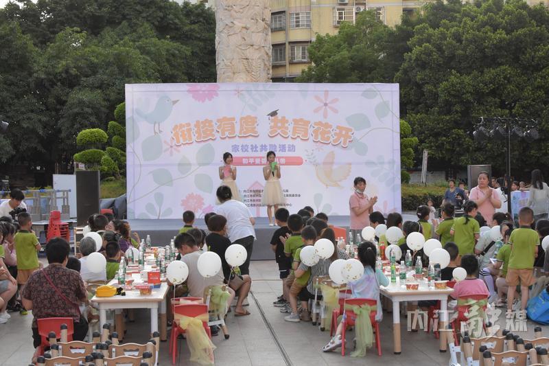 7月12日,东兴区甜城社会工作服务中心、西林街道社会工作服务站、天河社区、和平爱婴幼儿园等,在和平广场开展“衔接有度,共育花开”活动。