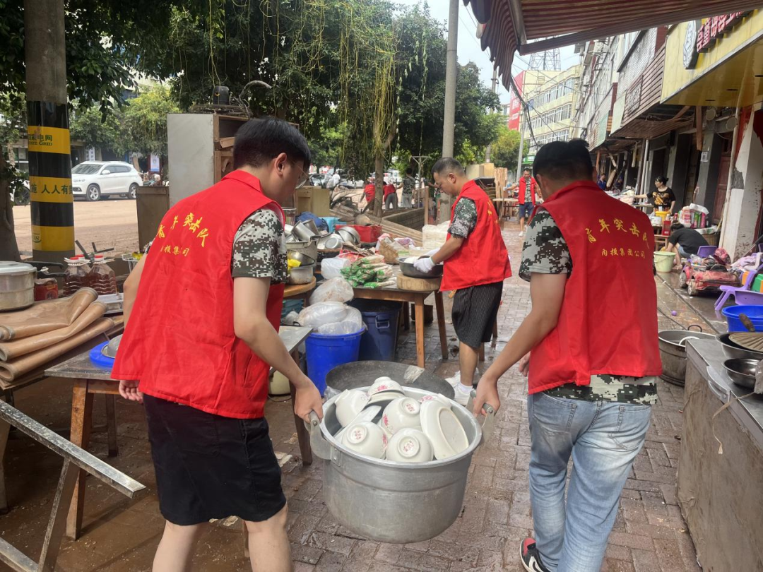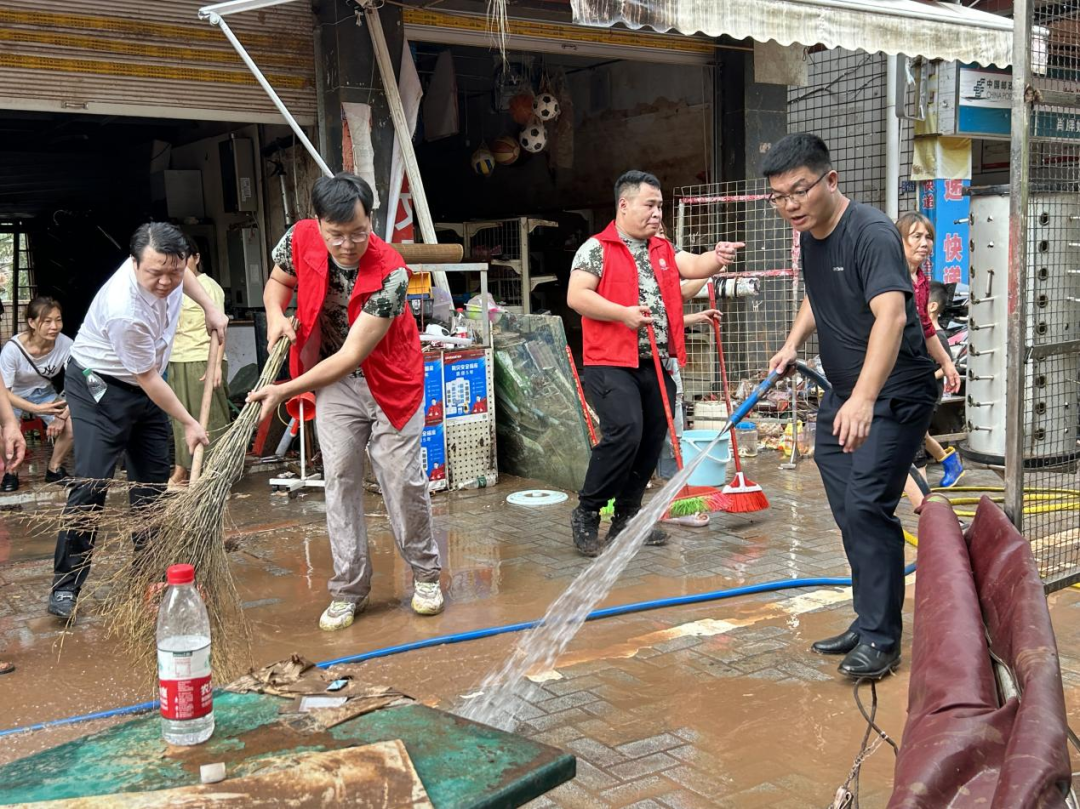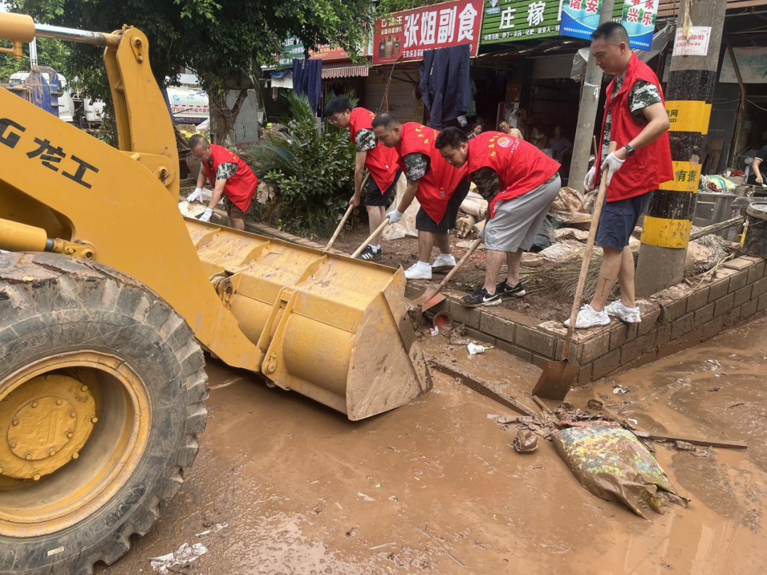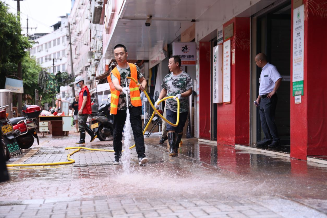 搬运物资、清扫垃圾、冲洗地面……7月16日上午9点,内投集团公司第五突击分队的队员们扬着扫帚、挥着铁锹,穿梭在田家镇沿江街的道路上、商铺间。