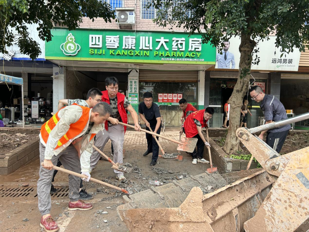 当天,内投集团公司派出第一、第二突击分队共25人,出动3台洒水车,自上午9点起,经过7个小时连续奋战,协助群众清扫房屋(商铺)100余间、摊位60余个,清扫清洗街道200余米,清理清运杂物、垃圾、淤泥等10余吨,对新街路段2000平方米、元宝花园小区院坝300余平方米的区域进行了全覆盖清理,街道、院落逐渐恢复了昔日的面貌。