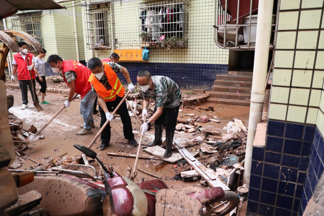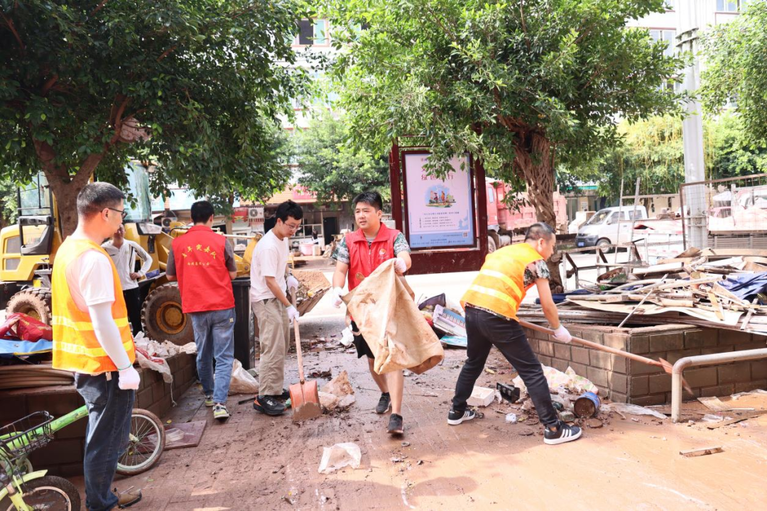7月15日,内投集团公司共派出4支突击分队120余人到田家镇场镇开展汛后清淤工作。7月16日,内投集团公司在原有人员的基础上,再次整合力量组建包含33名队员的第五突击队,调配4台洒水车、1台发电车和1台工程车,继续协助社区工作人员、群众进行淤泥冲刷、路面清洗、垃圾杂物清运作业。