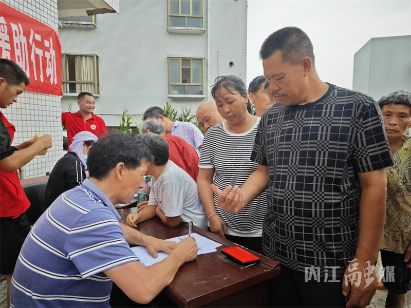 在发放物资过程中,家住苏家片区的刘大爷站在一旁观看,并没有领取物资。记者询问其原因,刘大爷说:“我的家位于高处,没有被淹,但是我的同村人很多房屋位于低洼处,受影响比较大。你们这次来送物资,我不能领,应该给受灾的村民。”