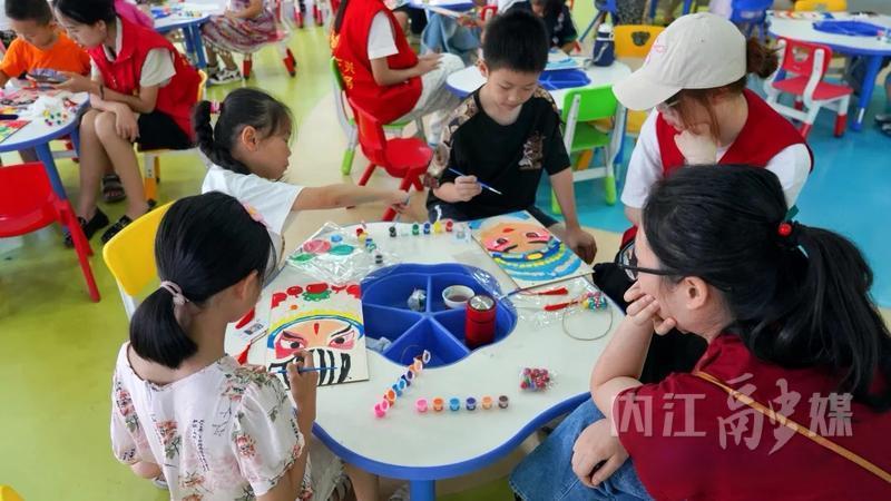 7月20日上午,在东兴区图书馆“甜城宝贝屋”DIY小课堂上,志愿者和学生、家长认真绘制一幅幅“京剧脸谱画”。“生、旦、净、末、丑”,孩子们充分发挥想象力和创造力,用丙烯颜料为脸谱上色、勾边,不一会儿,一幅幅色彩丰富、独一无二的“京剧脸谱画”便诞生了。