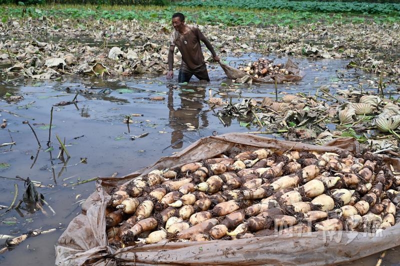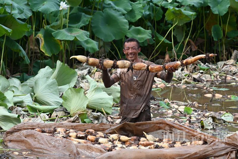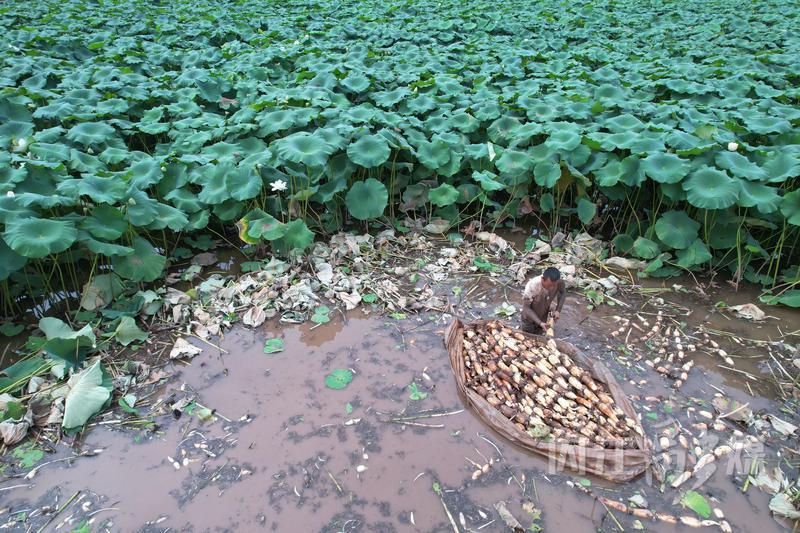 立秋节气将至,东兴区双桥镇阳河村莲藕种植基地的优质莲藕迎来采挖季,当地藕农抢抓农时采挖莲藕供应市场,呈现一派喜人的丰收景象。