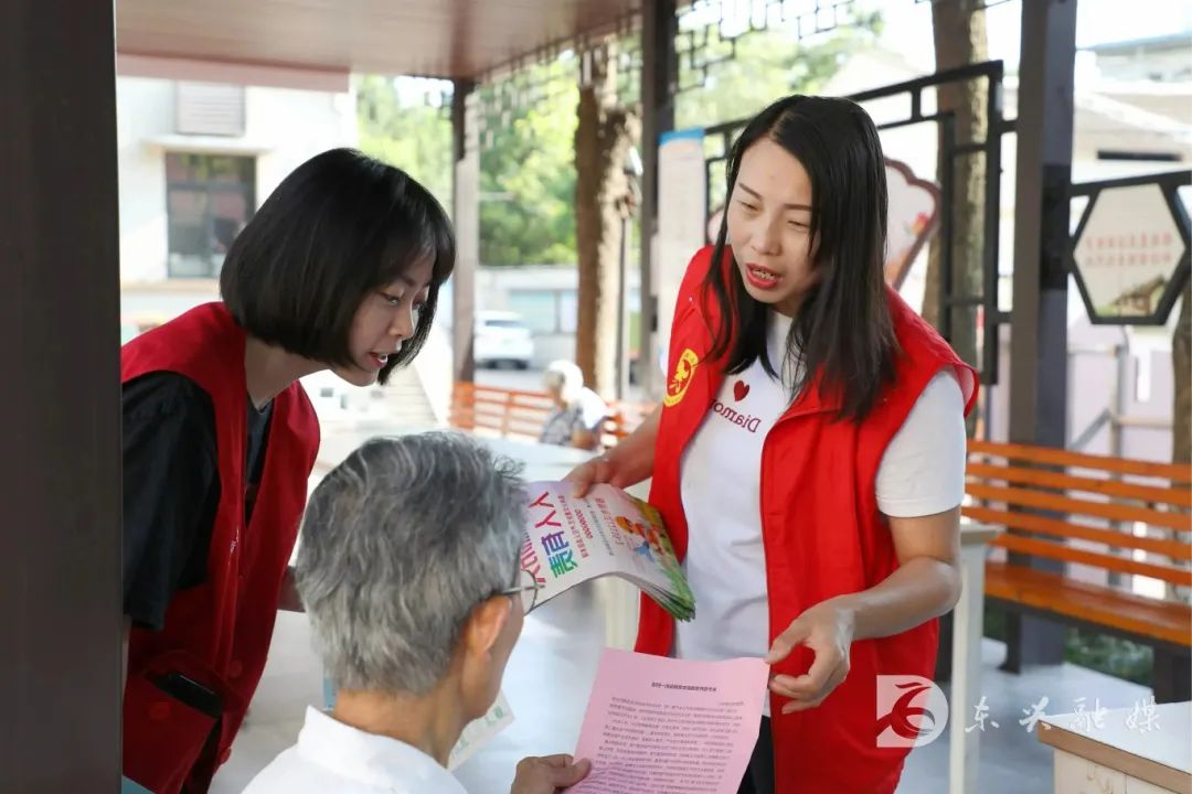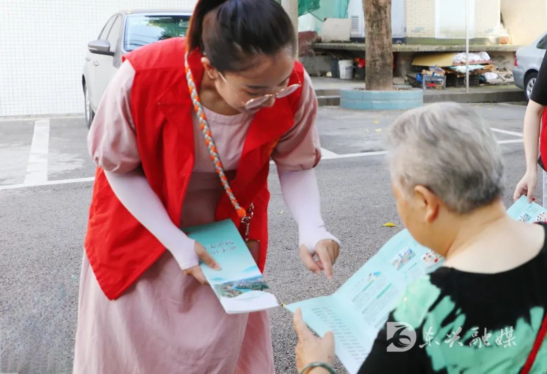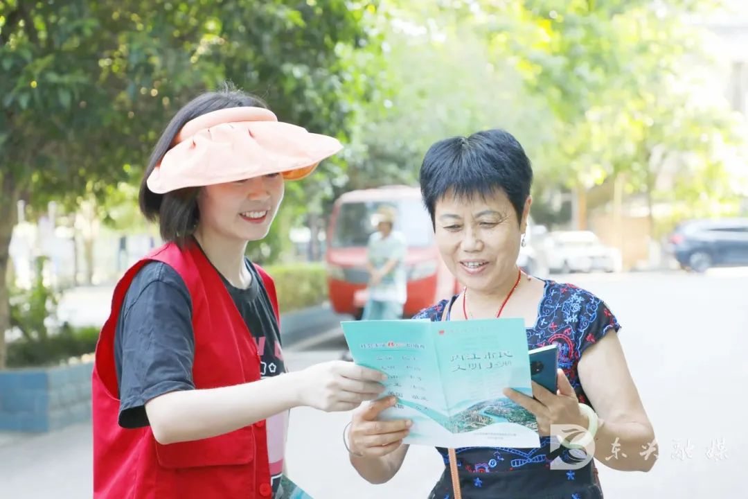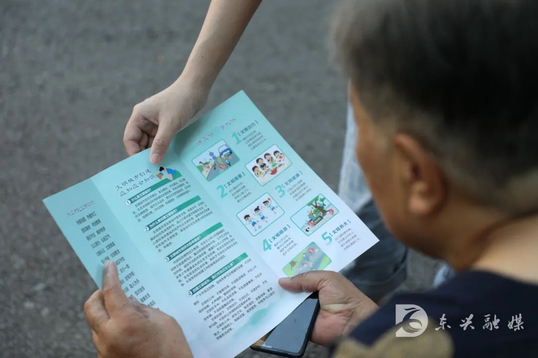 “叔叔阿姨,麻烦你们看一下我们的文明宣传手册,对我们社区在践行文明新风工作方面有什么好的意见建议,都可以跟我们反映哦。”8月7日上午,东兴区新江街道东风社区的工作人员趁着辖区居民晨练休闲,向大家分发文明新风宣传资料,鼓励其参与文明社区的建设。