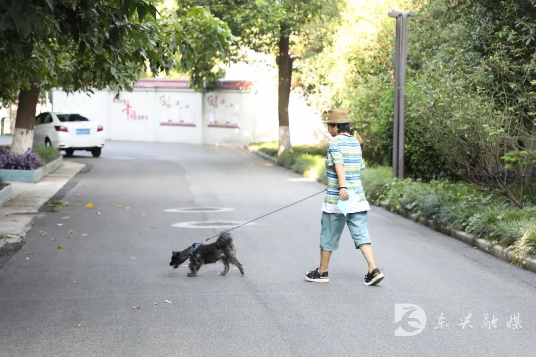 “大姐,又出来遛狗了啊。”工作人员张茂园看见一小区居民牵着狗从楼栋走出,便立马上前打招呼,也不忘递上一张宣传单,热心提醒出门遛狗一定要拴好绳,注意做好宠物狗的排泄物清理。