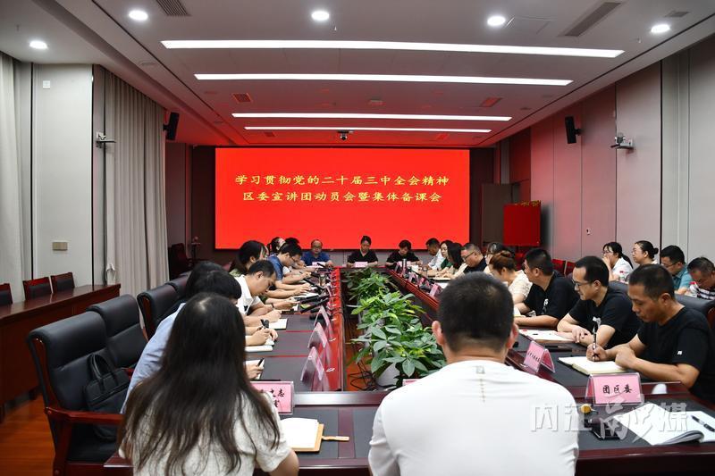 会议指出,要提高政治站位,切实增强做好党的二十届三中全会精神宣讲工作的使命感和责任感。要认真落实党中央和省委、市委、区委各项部署要求,以高度的政治责任感和历史使命感,扎实做好宣讲工作,坚决把这项政治任务贯彻好落实好,通过系统阐释、权威解读党的二十届三中全会提出的新思想、新观点、新论断,帮助全区广大干部群众不断深化理解和认识。