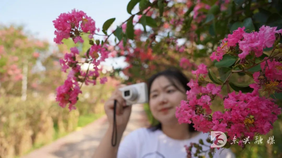 近日,东兴区永福镇盘陀村的紫薇花迎来了一年中最绚烂的时刻,吸引了众多游客前来拍照打卡,共同见证紫薇花的浪漫与美丽。