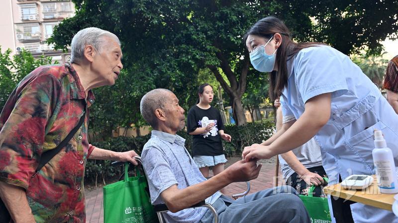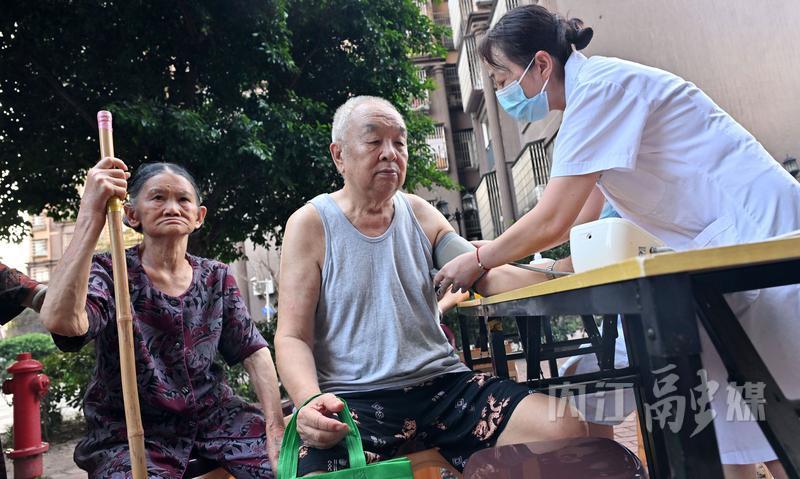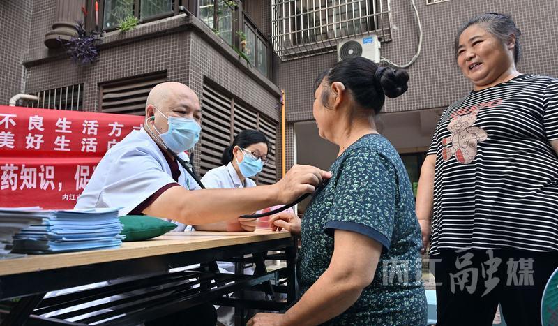 9月19日,内江市东兴区的医务人员为东兴街道农校社区居民免费看病。