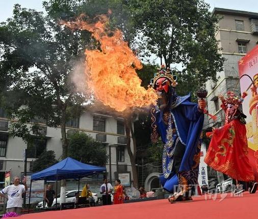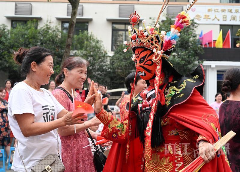 9月29日,内江市东兴区新江街道东风社区热闹非凡,群众载歌载舞喜迎国庆。
