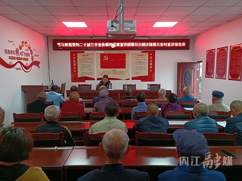 9月30日,东兴区委宣讲团第五分团到永福镇太安村,宣讲党的二十届三中全会精神。太安村“两委”及党员、群众代表20余人到场聆听。