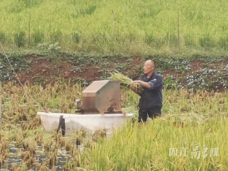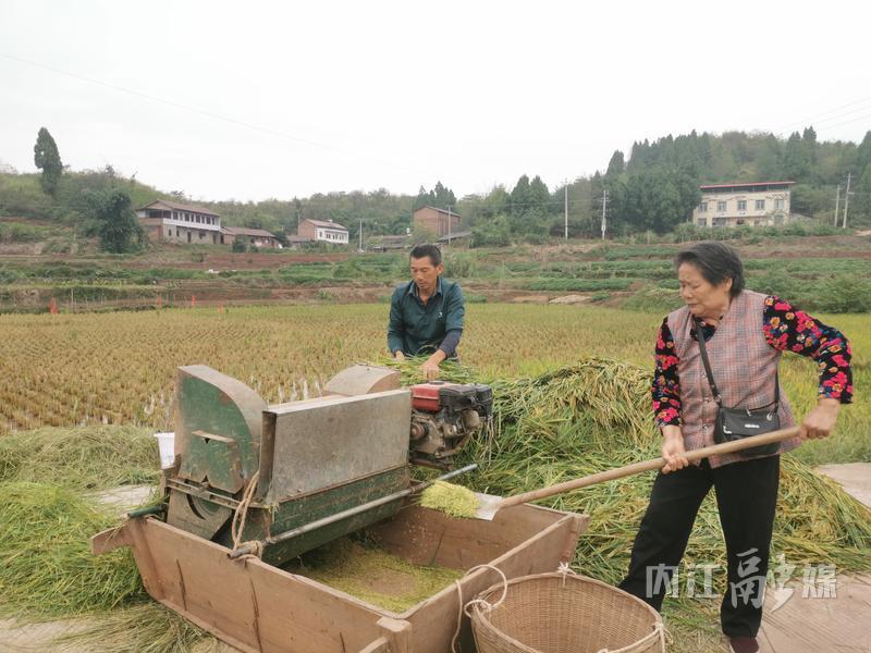 在双桥镇豆芽村10组,村民们有的将收割来的再生水稻运到田边空地,用水稻机器脱粒;有的则在田间用小型打谷机收割脱粒。村民们一边劳作,一边交流着今年的收成和种植经验,田间不时传来阵阵欢声笑语。