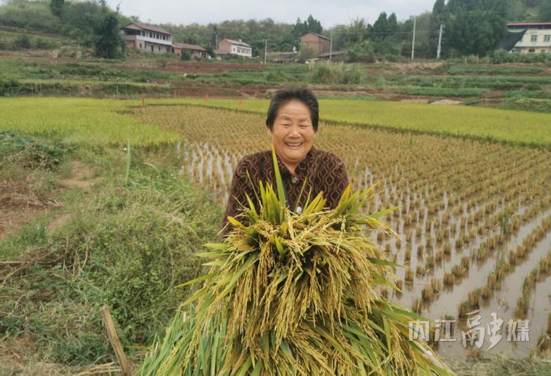 10月10日,在内江市东兴区双桥镇,一块块稻田层层叠叠,再生水稻已陆续成熟,村民们正趁着晴好天气抢收再生稻,开镰收割的场景热闹非凡。