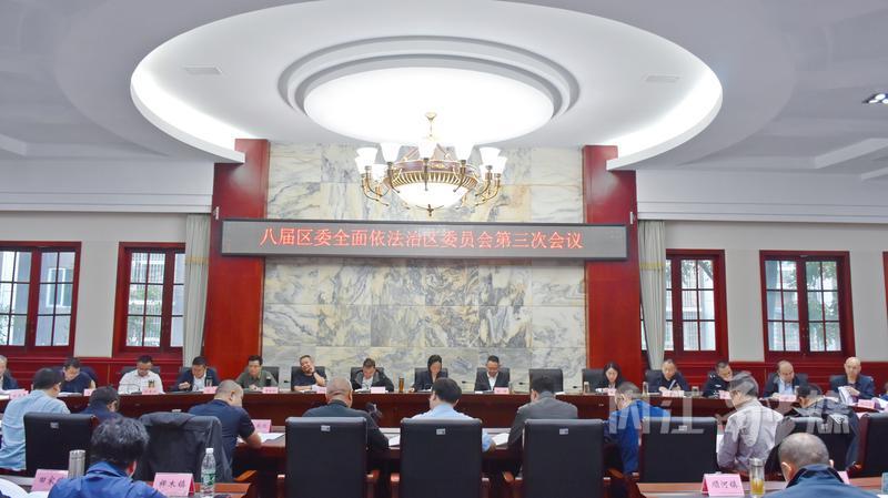 会议传达学习十二届省委全面依法治省委员会第二次会议精神和八届市委全面依法治市委员会第三次会议精神,听取区委依法治区办汇报2023年以来全面依法治区工作情况。