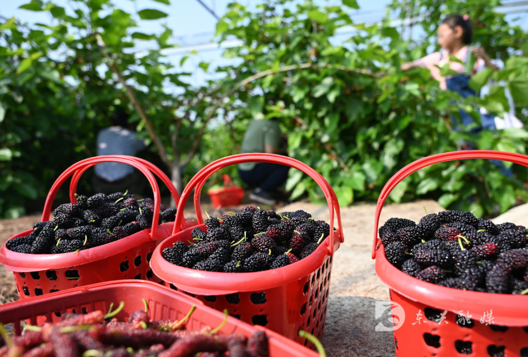 在东兴区,每年四、五月间,桑葚种植基地便成为了一道亮丽的风景线。目光所及之处,是翠绿的桑树林,犹如绿色地毯铺在山间田野。桑树林里,一簇簇桑葚,或红或紫或黑,将桑枝压弯了腰,让人忍不住采摘品尝。
