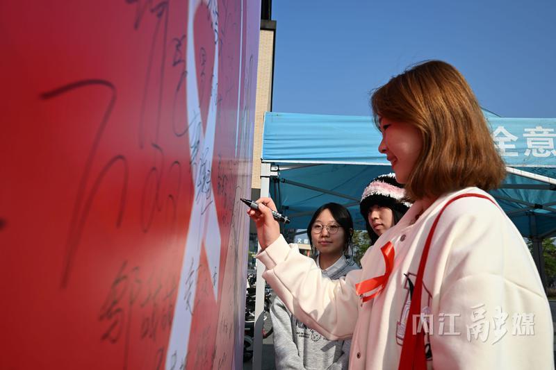 今年12月1日是第37个世界艾滋病日。当天,内江市东兴区高桥街道卫生院联合内江师范学院、内江市妇联、内江市红十字会,在内江师范学院开展“红丝带”进高校主题活动。