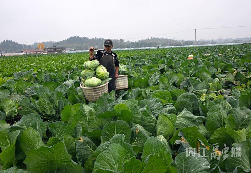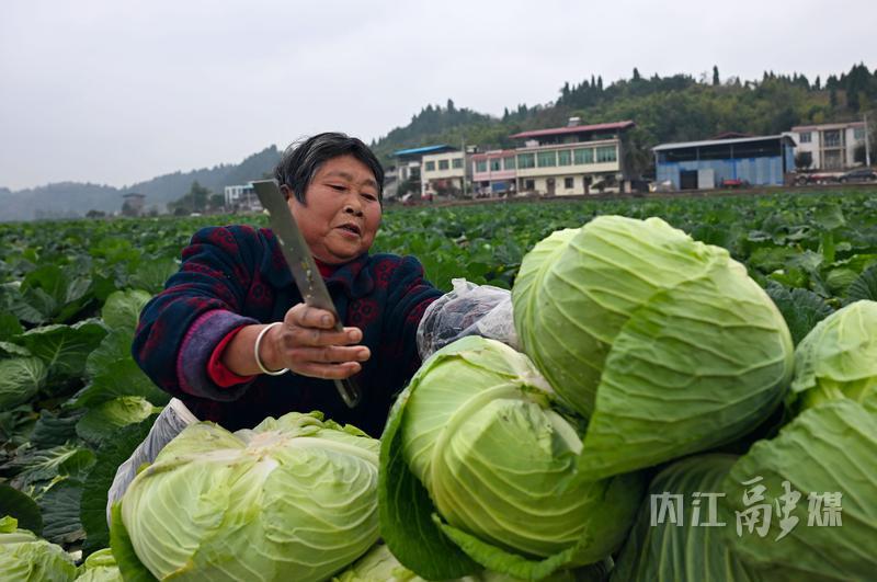 12月10日,内江市东兴区石子镇旱地坝村的绿色蔬菜基地呈现出一片繁忙景象,当地菜农们正在加紧采收成熟的莲花白。
