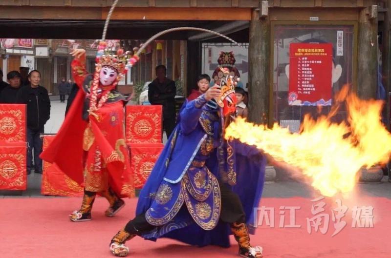 演出在《桂英打雁》中拉开序幕,巾帼英雄穆桂英挂帅的场景在演员们细腻的演绎下,在舞台上再现那段金戈铁马的历史。紧接着,《变脸》绝技让观众目不暇接,瞬间变换的脸谱如同川剧艺术的神奇魔法,赢得现场观众阵阵掌声和惊叹声;《吐火》表演将川剧的惊险刺激与神秘莫测展现得淋漓尽致,火焰在演员口中吞吐翻涌,炽热的光芒照亮老街,让观众感受到川剧艺术的独特魅力。